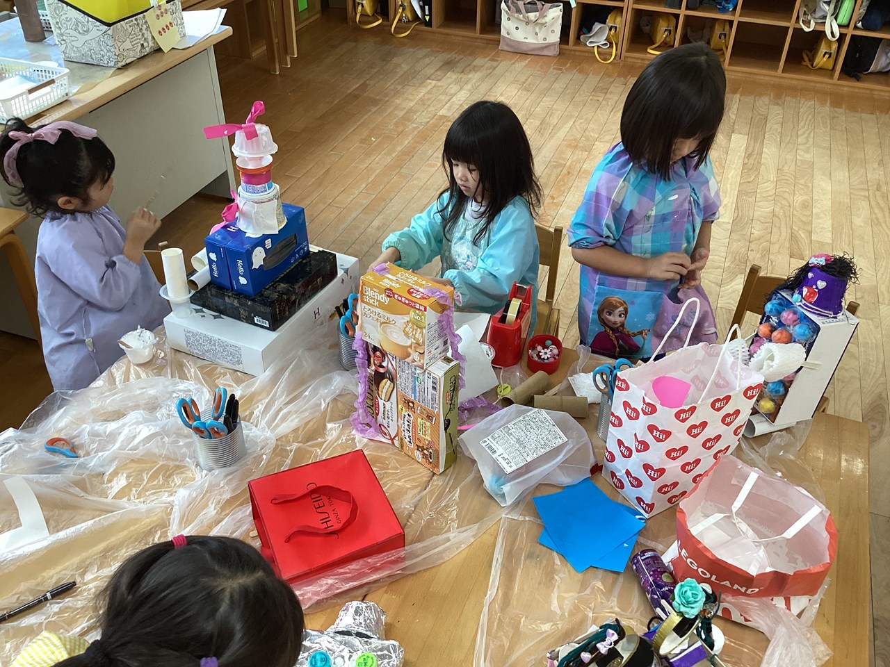 子どもたちの創造力・表現力の豊かさに驚かされる毎日です。いかに自分の頭が凝り固まっているのか、子どもたちを見ているとそう感じさせられます。子どもたちの素敵なアイディアに、寄り添って、認めて、ワクワクしながら作品作りのお手伝いをしていけたらと思っています。