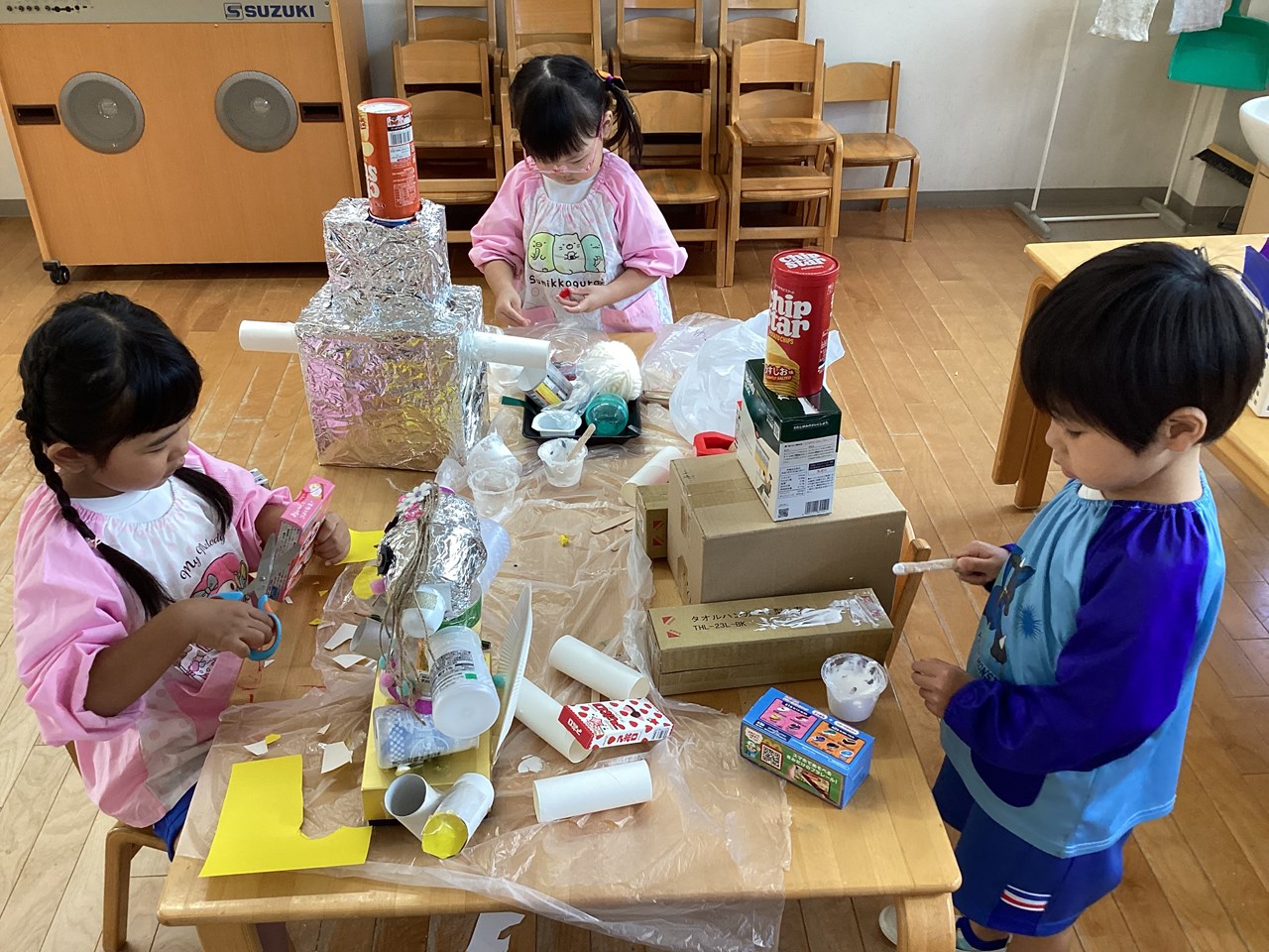 年中組は、へんてこりんな世界に住むロボットを制作中です。