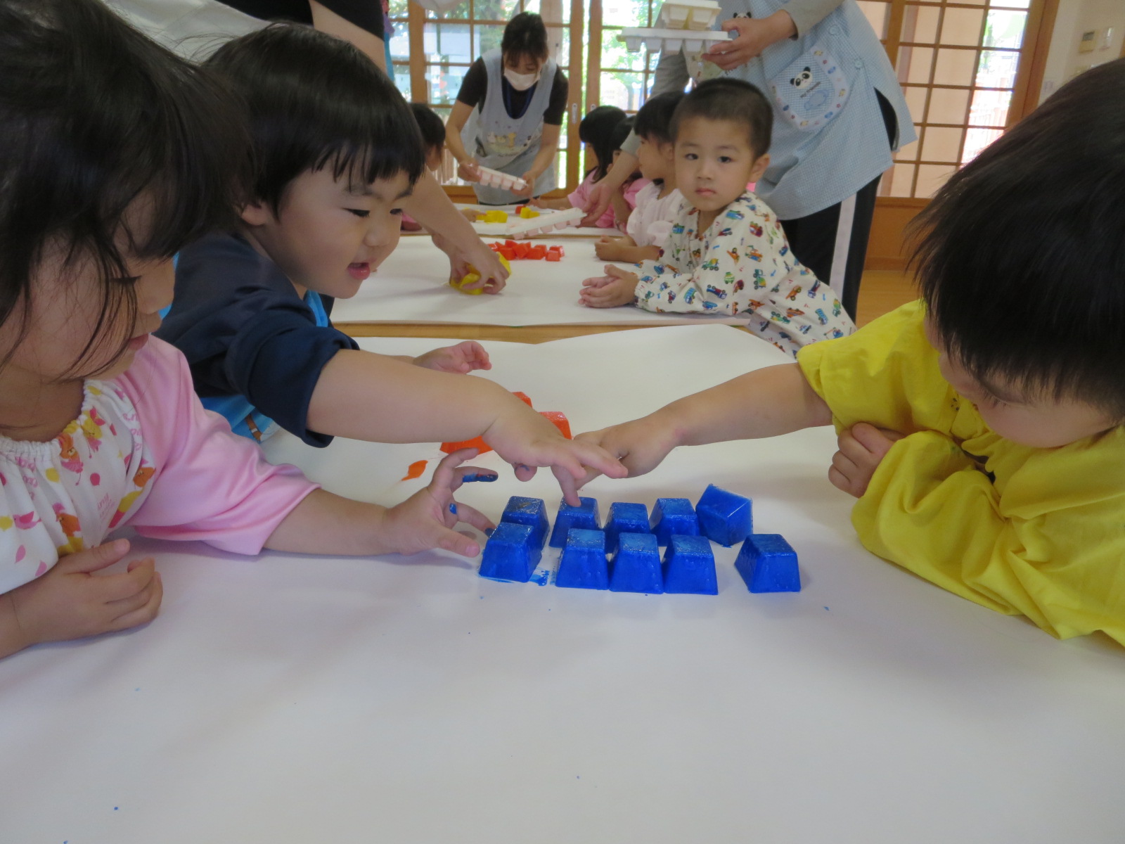 氷絵の具で遊ぶ(年少組・満3歳児)