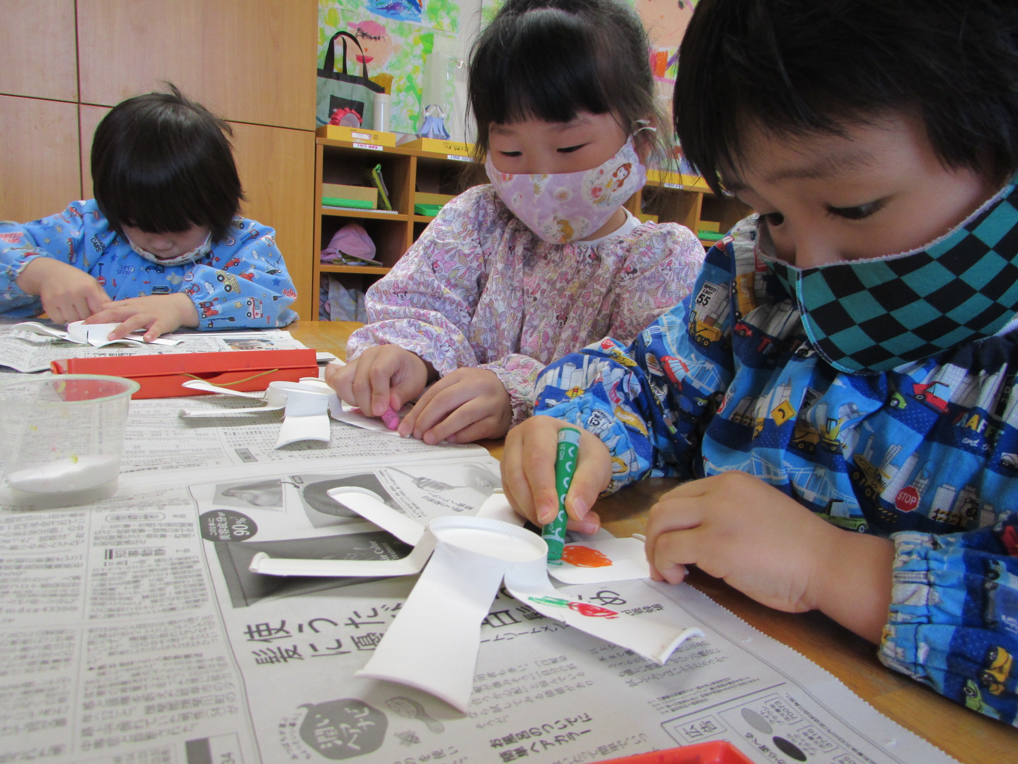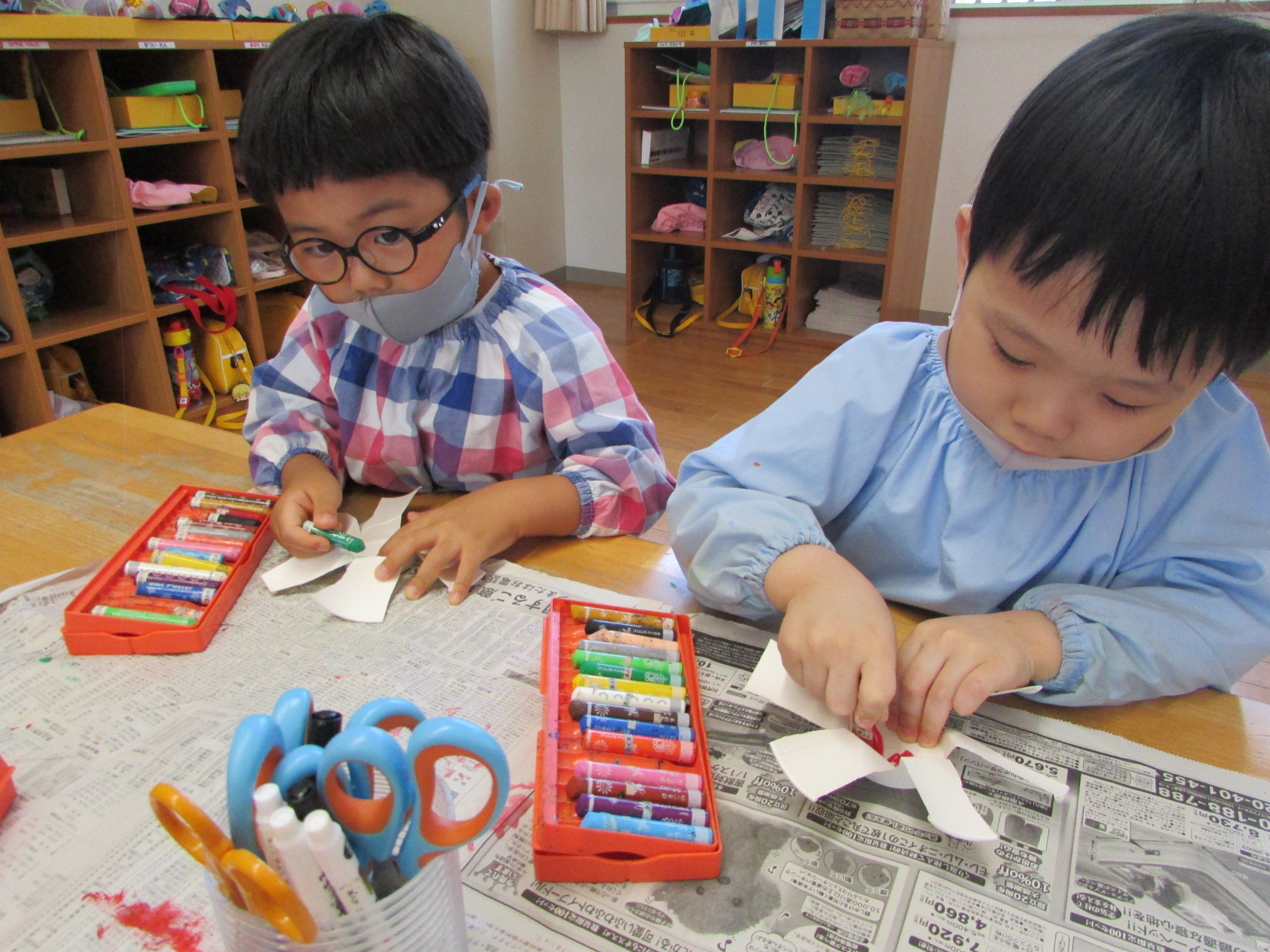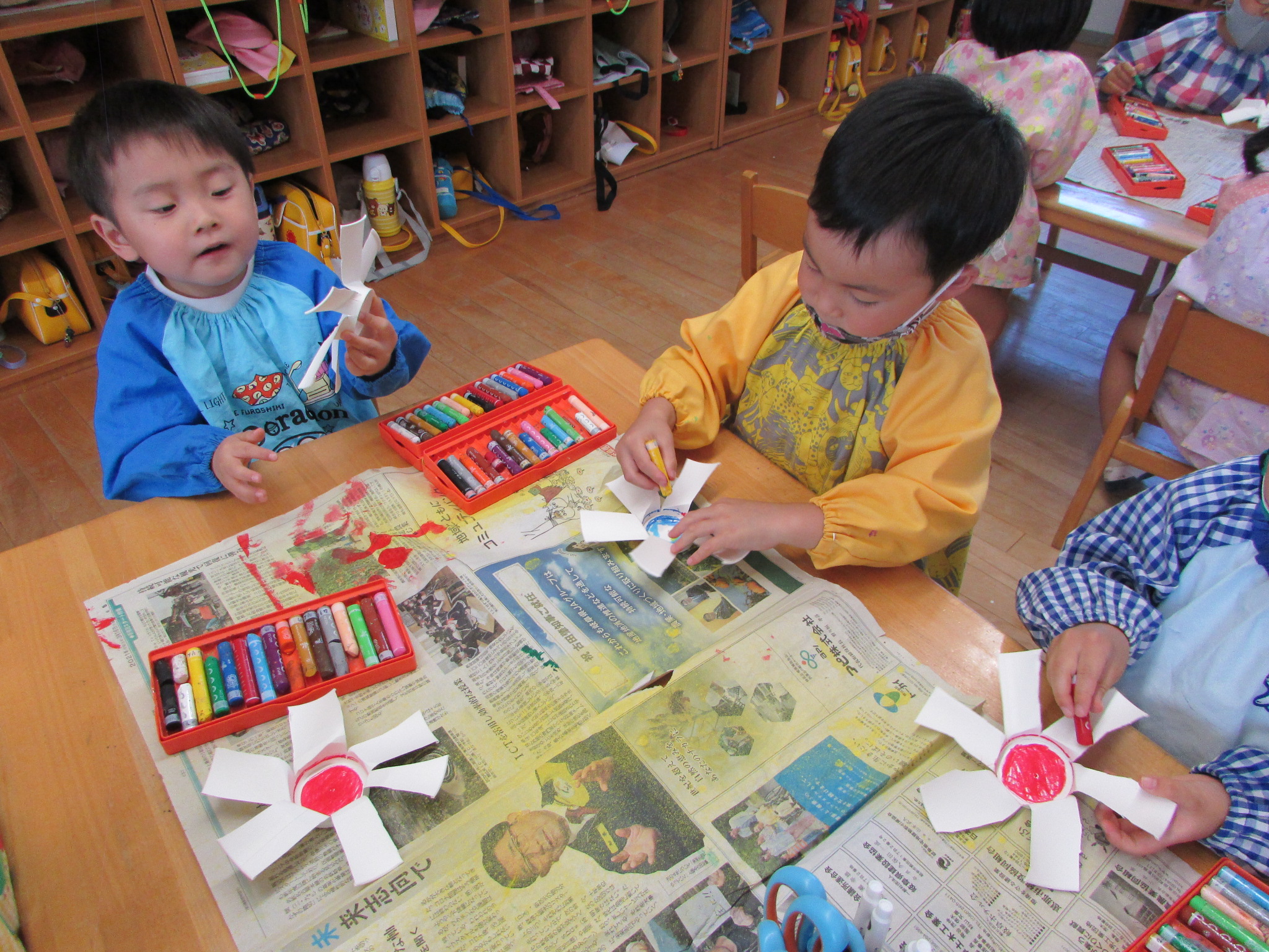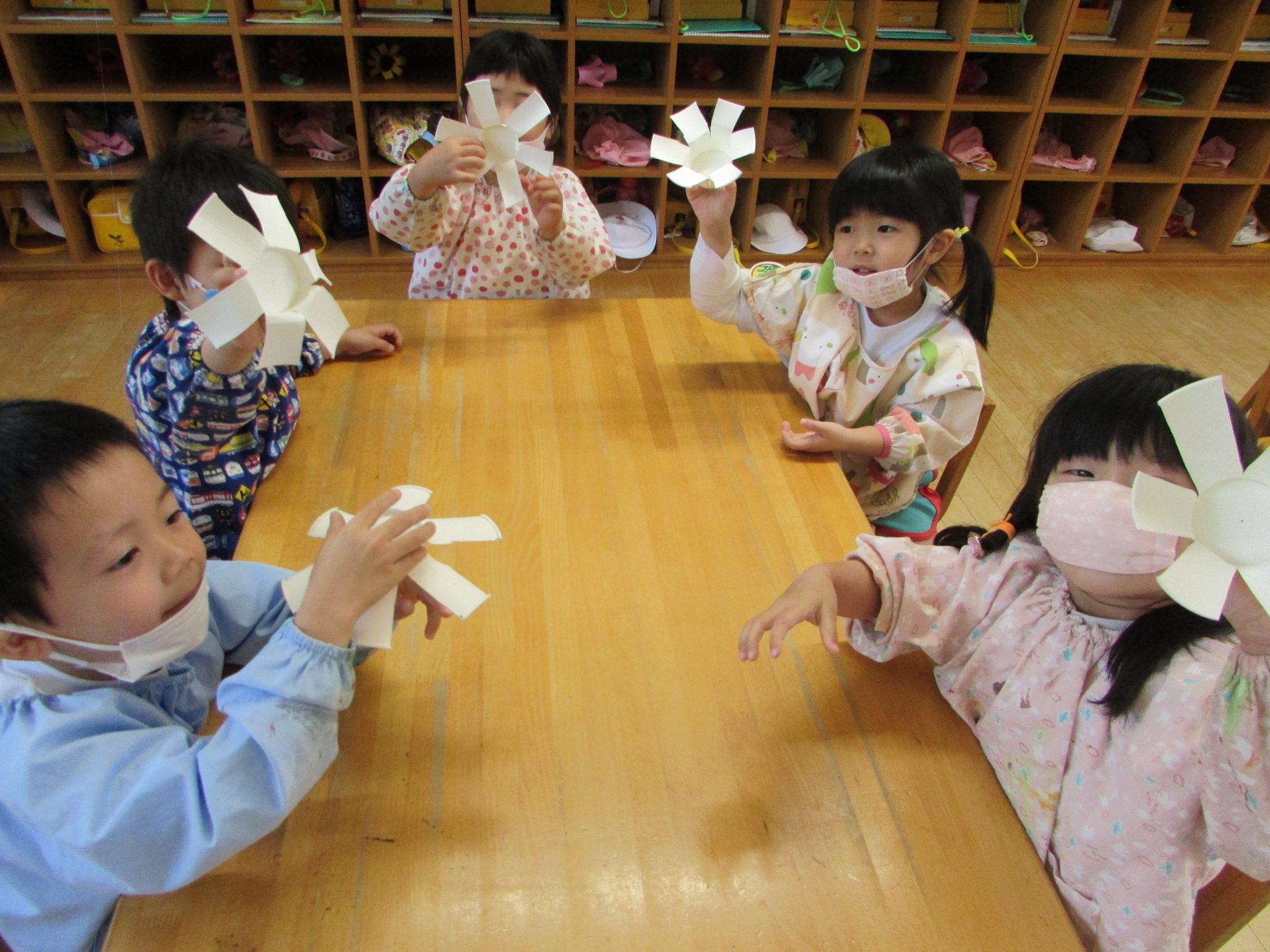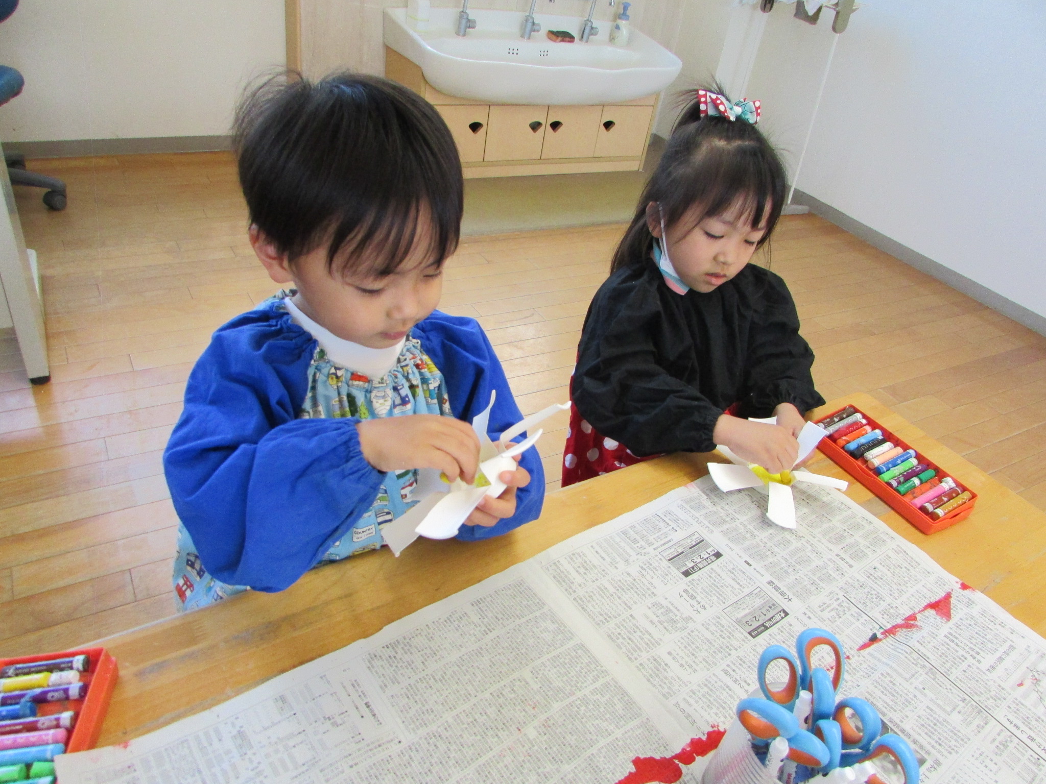 開いたときには「お花みたい!」「羽が6枚あるね!」と話す姿が見られ、上手に切れたことがうれしそうでした。