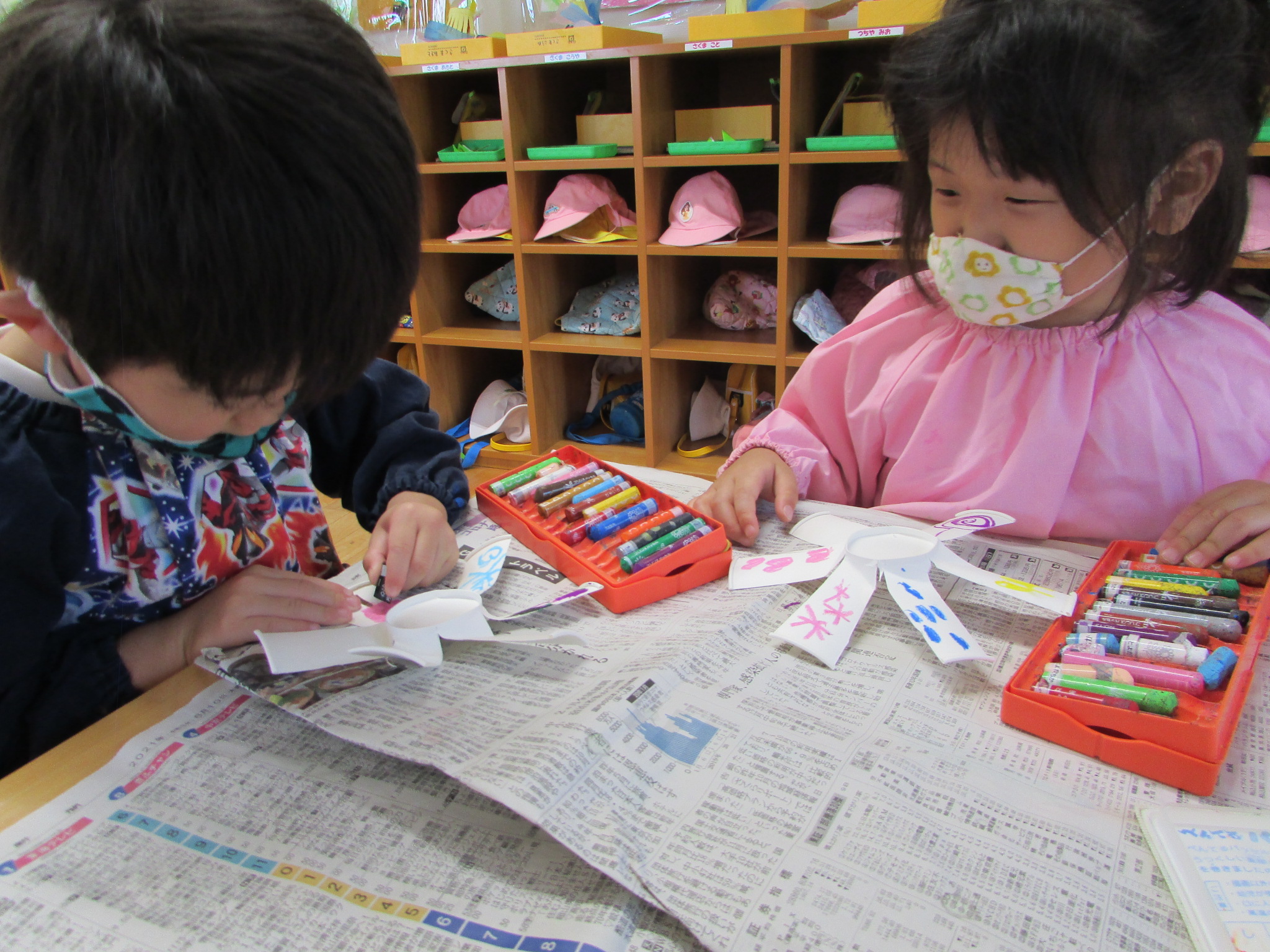 「虹色にしたらきれいかな~」「太陽みたいになった!」と楽しく描くことができました。