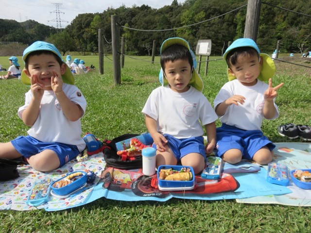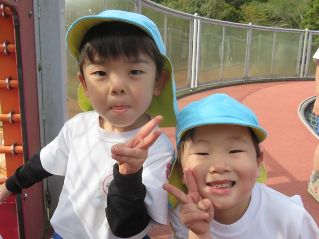 遠足 年少組 2021.10.21 秋の遠足はファミリーパーク! 前日にみんなで作ったてるてる坊主のお陰で秋晴れの遠足日和となりました。目を輝かせながら遊具へ向かう子どもたち。伸び伸びと遊びながら友達と関わる姿もたくさん見られ、みんなと一緒に楽しい時間を過ごすことができました。 < >