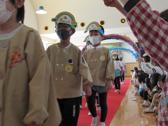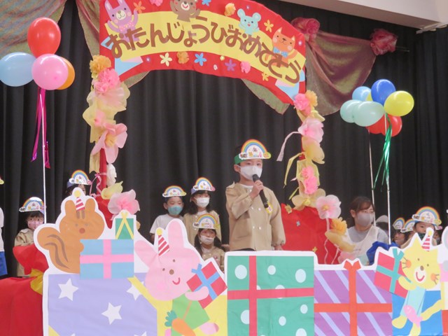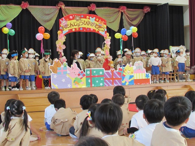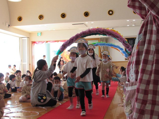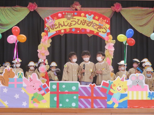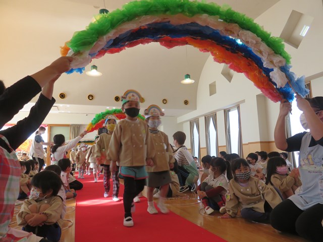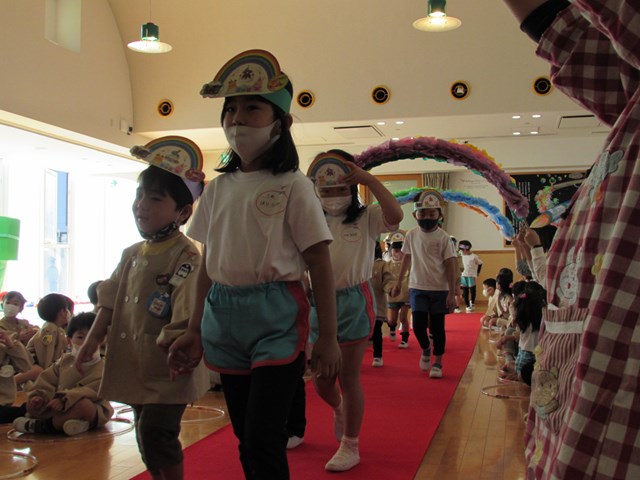 続いて誕生会です。誕生児がバースデーロードを通って入場します。