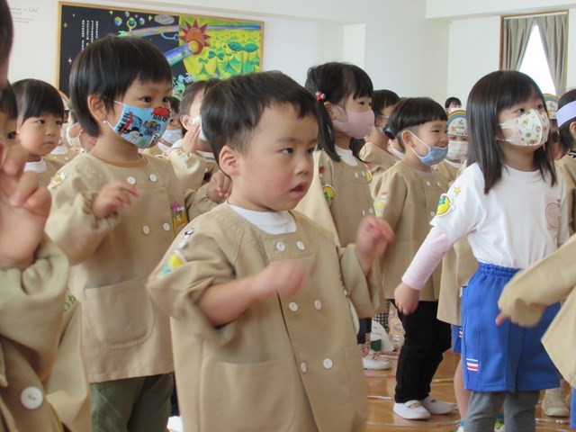 先生と一緒に手遊びをしました。