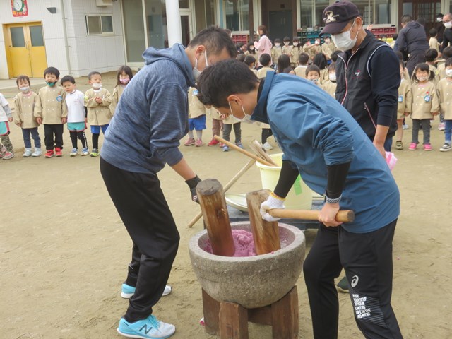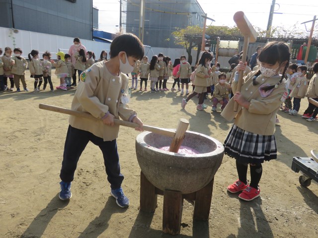 ぺったんこ!それぺったんこ!おもちをつきましょう!ぺったんこ!