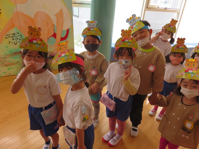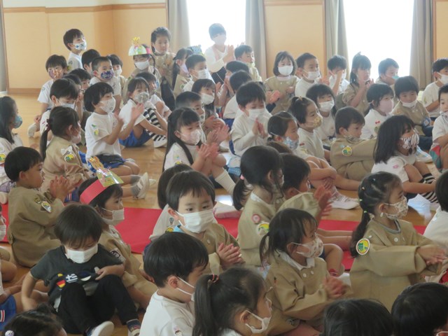 誕生児へのお祝いのメッセージ。「好き嫌いしないでたくさん食べて大きくなってね」「みんなと仲良くしてね」等、自分で考えた言葉を言います。