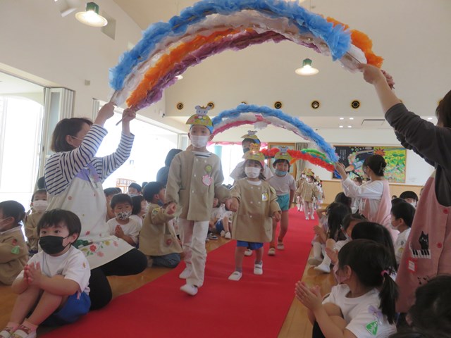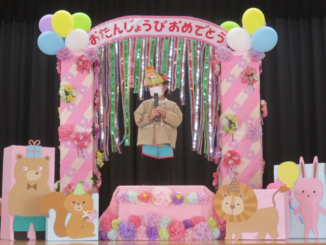 みんなの拍手に迎えられてバースデーロードを通って入場します。「これからの一年、楽しいことがいっぱいありますように」