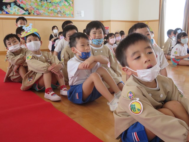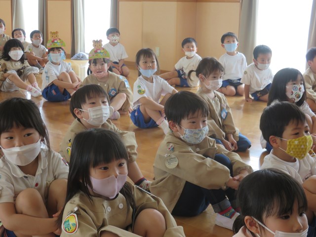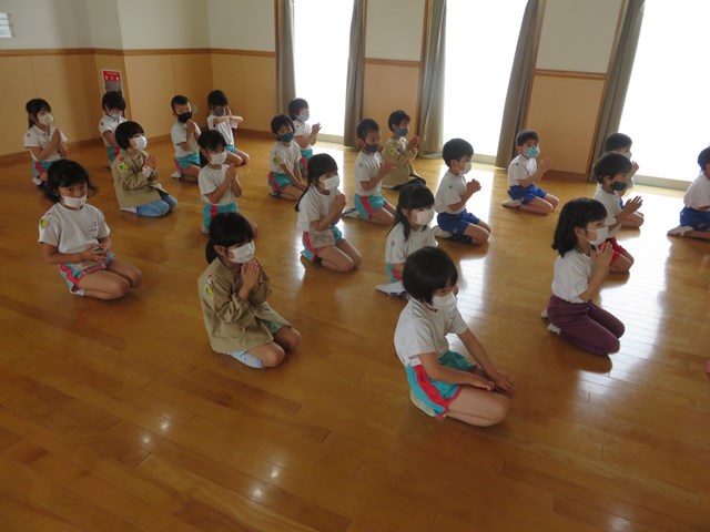 『幼児のおつとめ』園長先生のお話を聞きます。