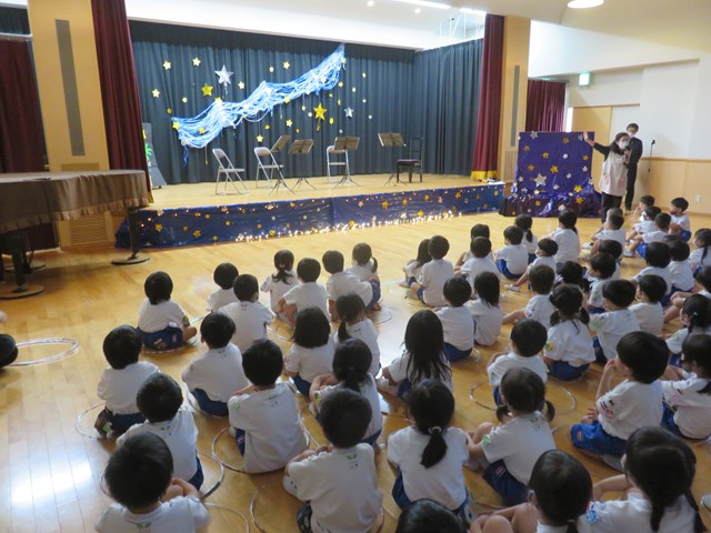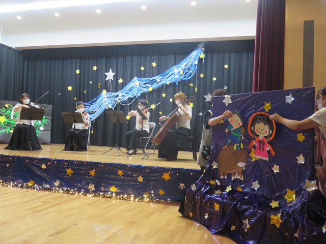 曲に合わせて七夕の話が進められていきます。場面が変わるたびに様々な音楽が演奏され、音楽と物語を楽しみました。
