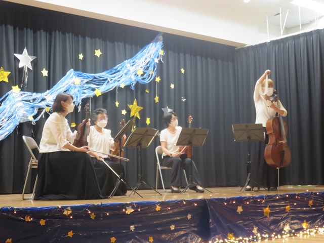最後は「たなばたさま」を歌いました。常川先生も飛び入りでヴァイオリンを演奏しました。コラボ演奏も素敵でした。