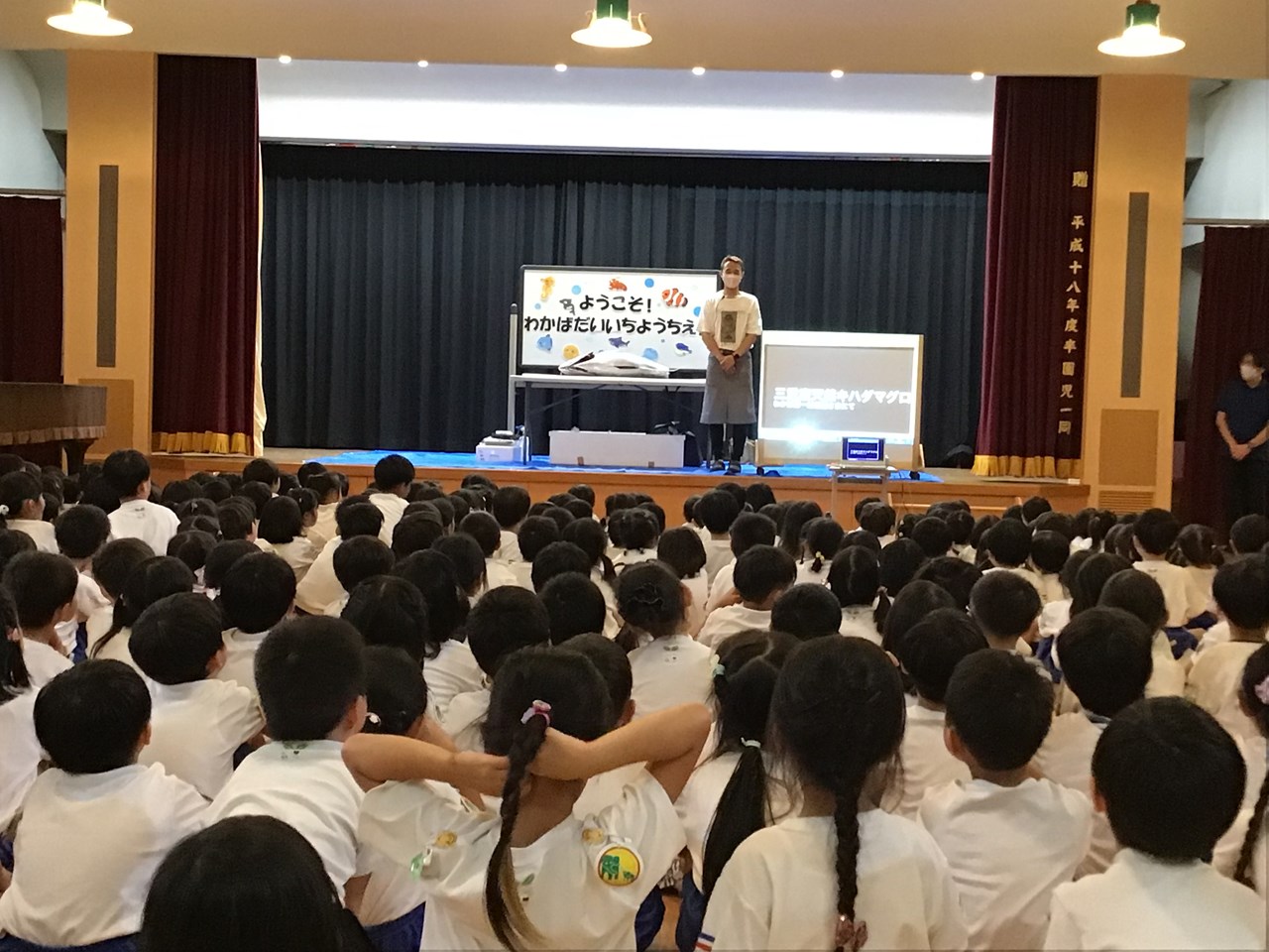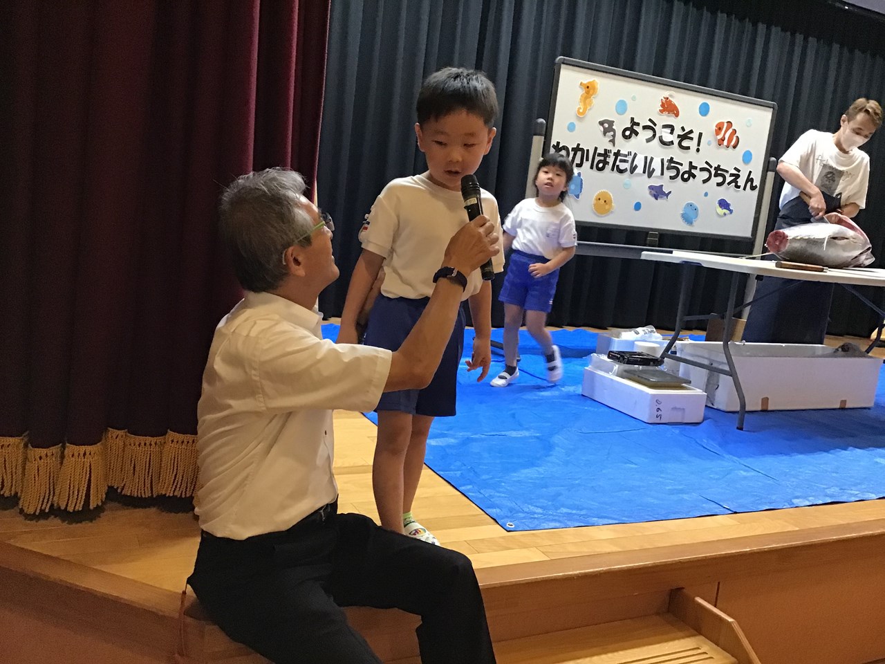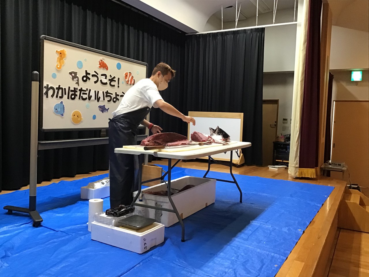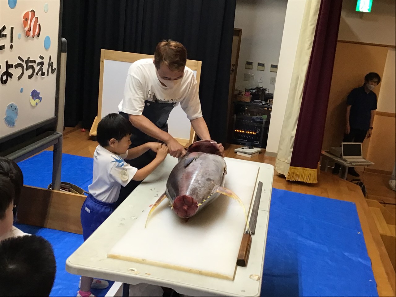 さて、登園日初日は「マグロの解体ショー」をみるイベントがありました。