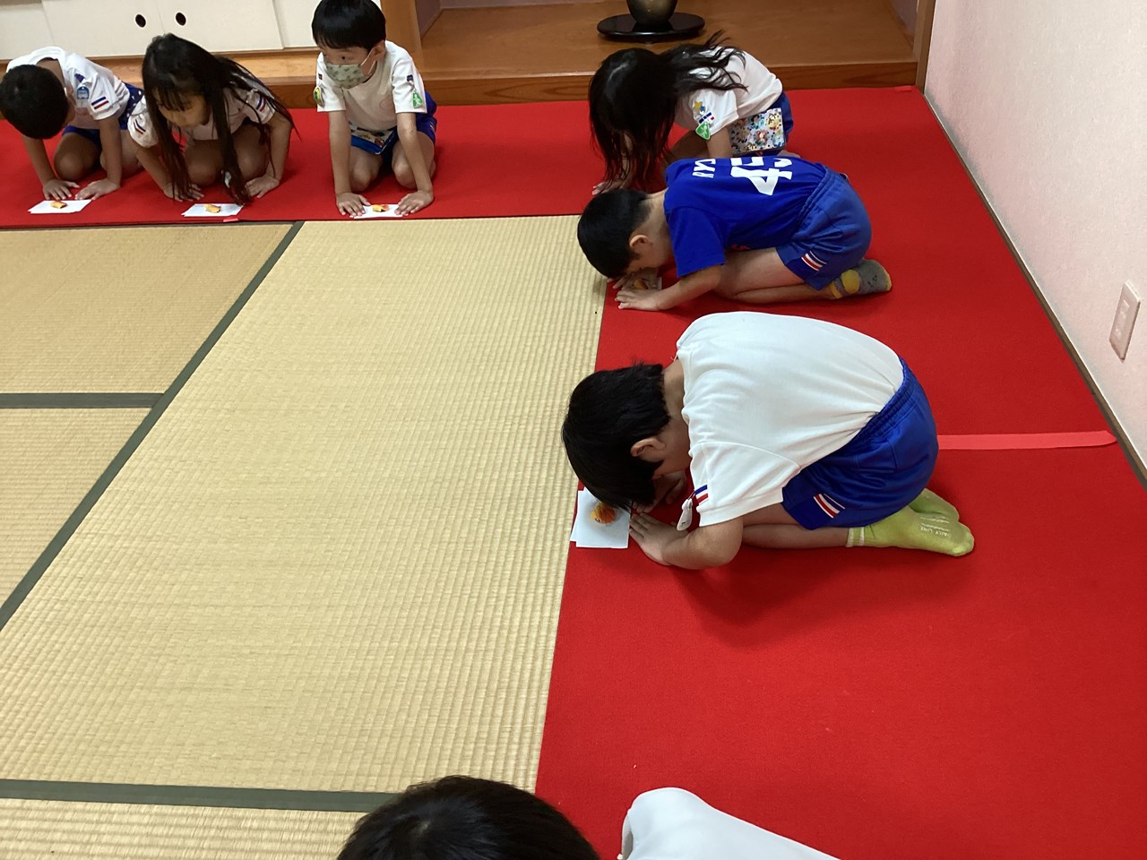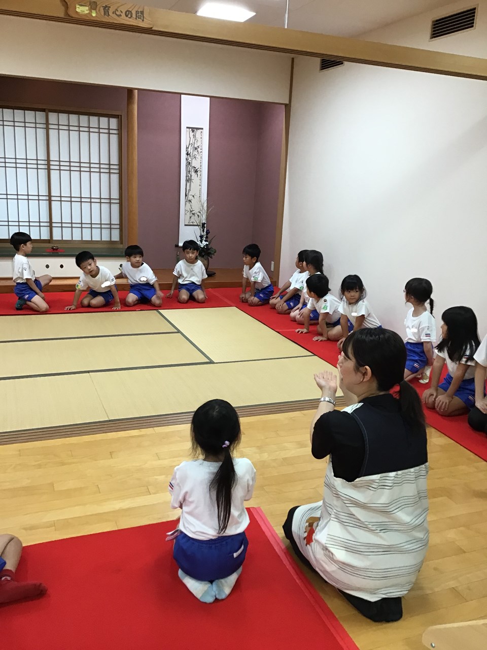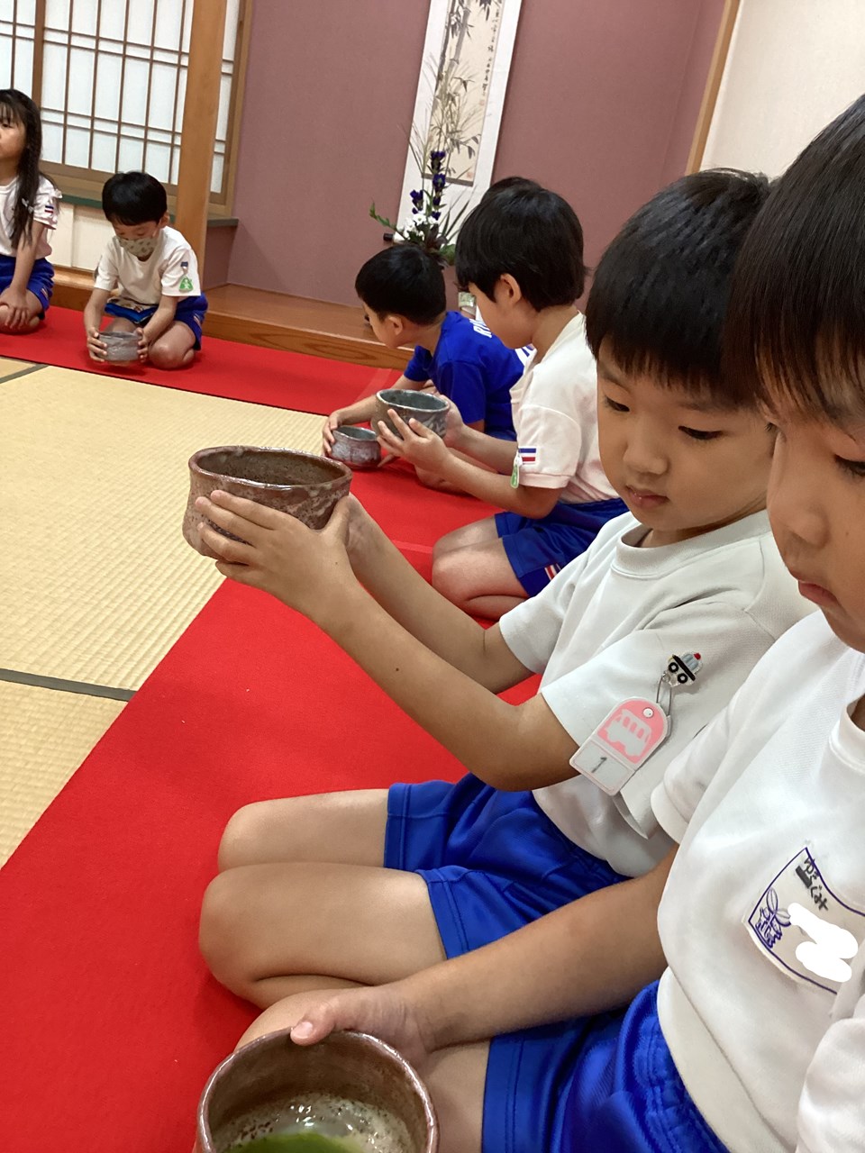幼稚園にある和室の部屋「育心の間」にて、1回目のお茶会が行われました。