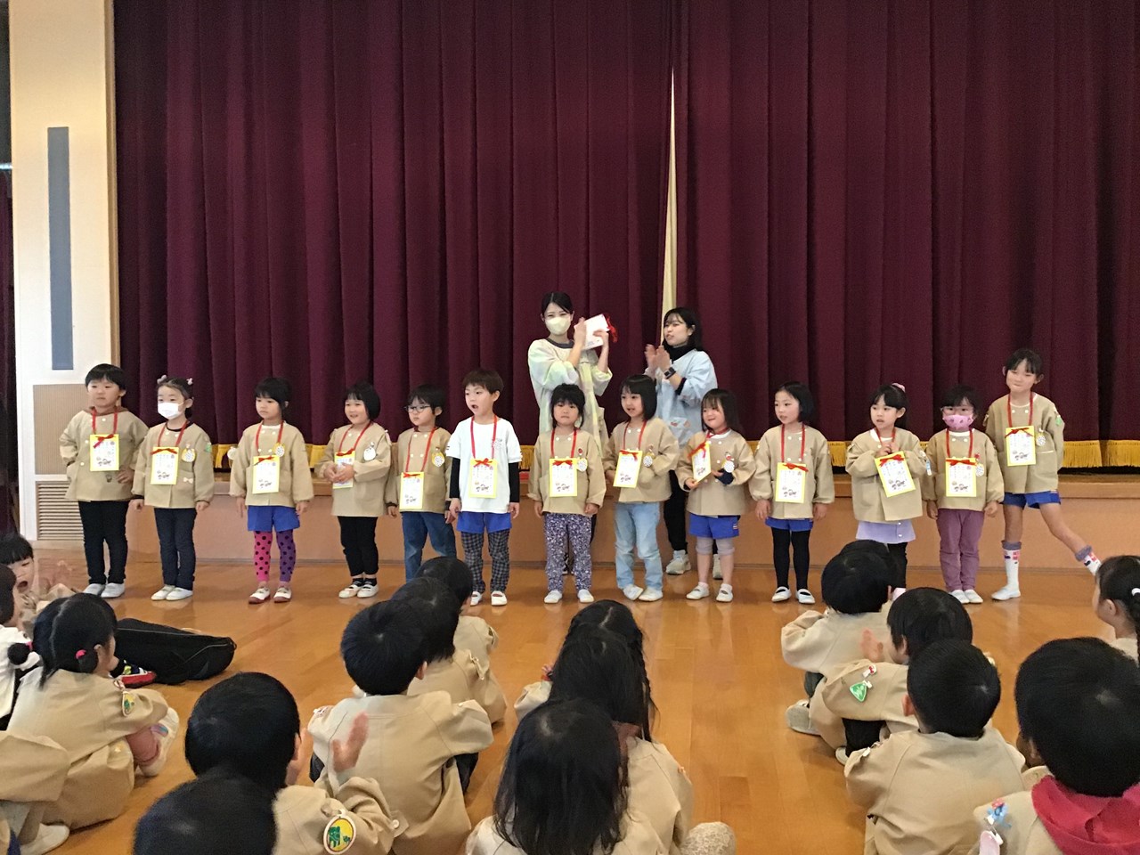 思ったようにかるたが取れず悔しい思いをする子や、練習よりたくさんかるたが取れて嬉しい子、同じクラスの子が表彰されるのを自分のことかのように喜ぶ子など様々な様子が見られました。