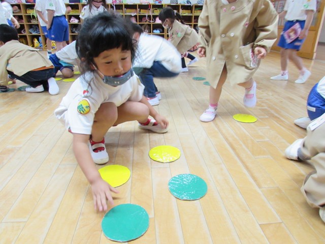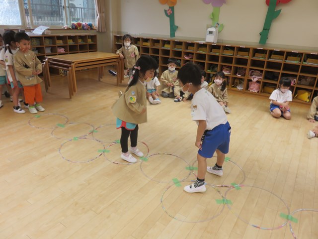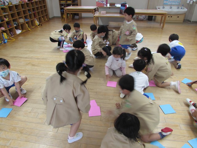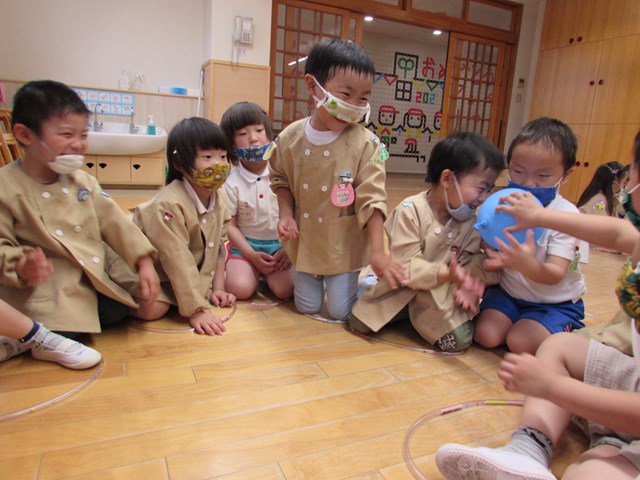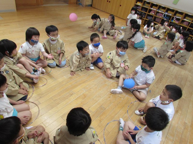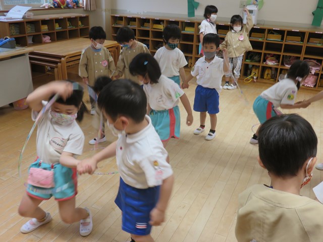 現在、岐阜県は、「まん延防止等重点措置区域」に指定されています。課外活動の制限がされていますので、春の遠足は中止とし、「お弁当の日」とさせていただきました。この日は、あいにくの雨となりましたので、一日室内で過ごすことになりました。思い切り体を動かし、競争したり、友達と力を合わせることの楽しさを味わったりと、「笑顔あふれる」クラス活動となりました。