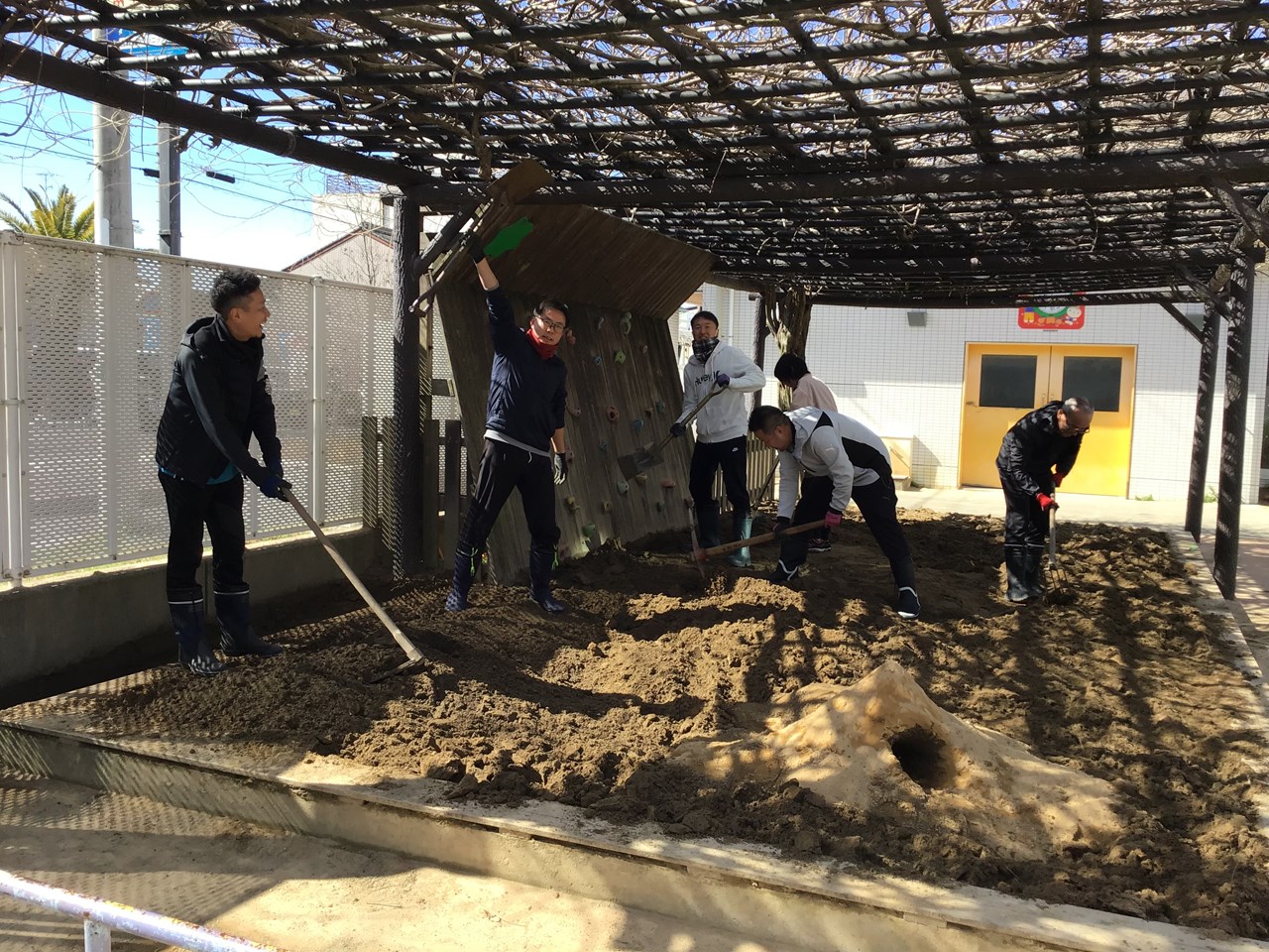 幼稚園の環境整備もしてくださる運転手さん達です。