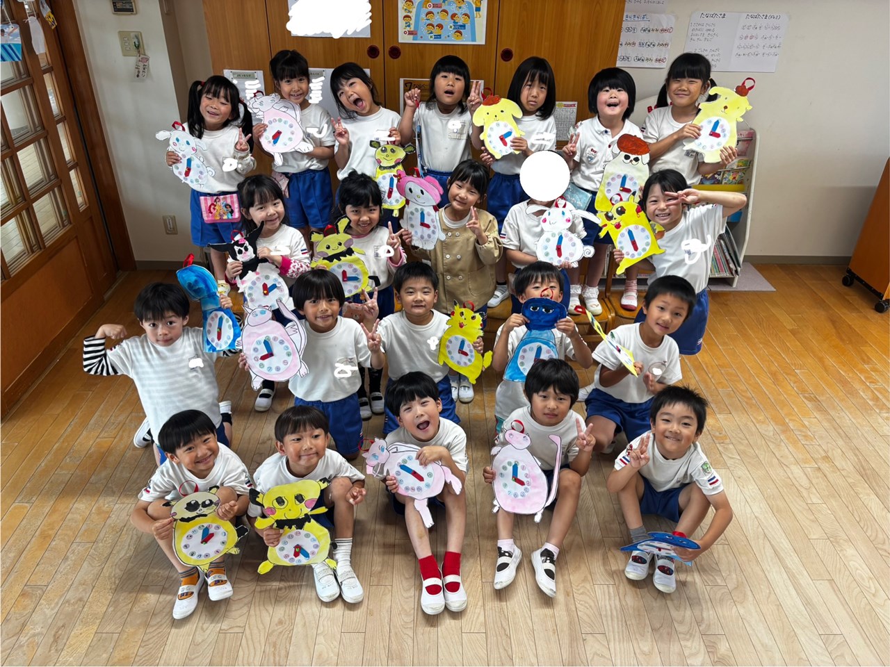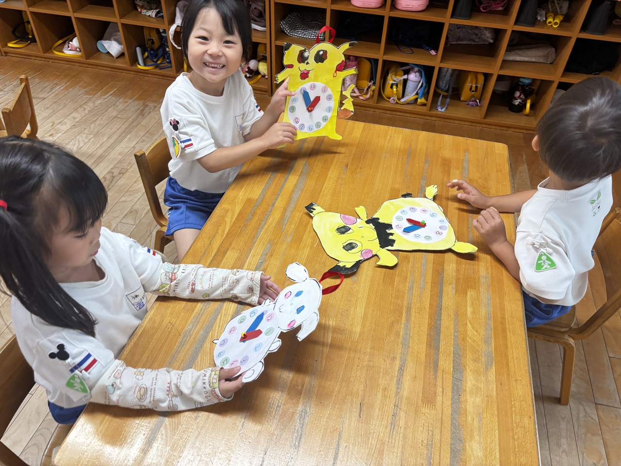 子どもたちの園生活の中で、「今日は〇時に起きたよ」「5時にお迎えなんだ」「あと10秒で交代しようね」と、時間の間隔をなんとなく理解しはじめている様子です。